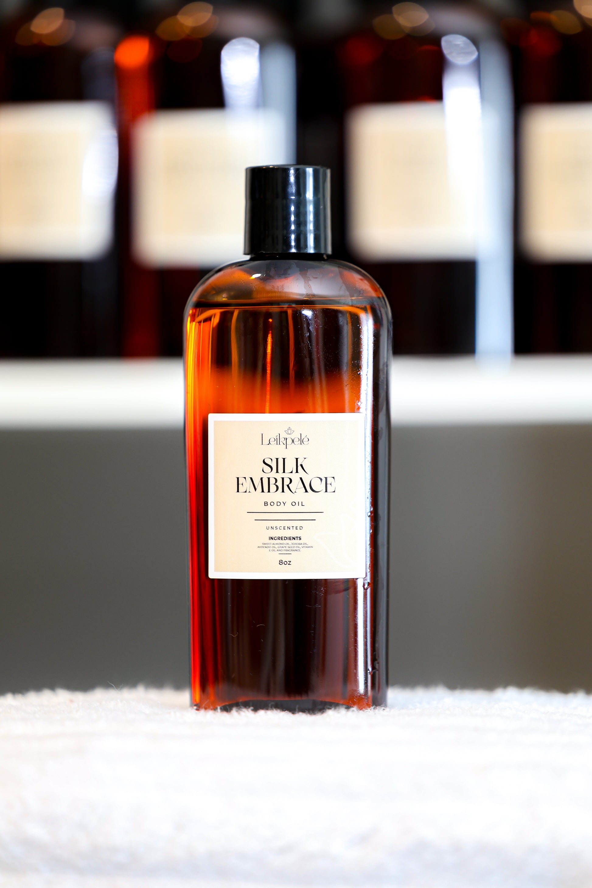 Products consist of five carrier oils that work together to heal and nourish the skin. The combination of these oils helps to moisturize and give a radiant glow without being too heavy or sticky. Leikpele’s body oils are a mixture of Jojoba oil, sweet Almond oil, grapeseed oil, avocado oil and vitamin E oil.