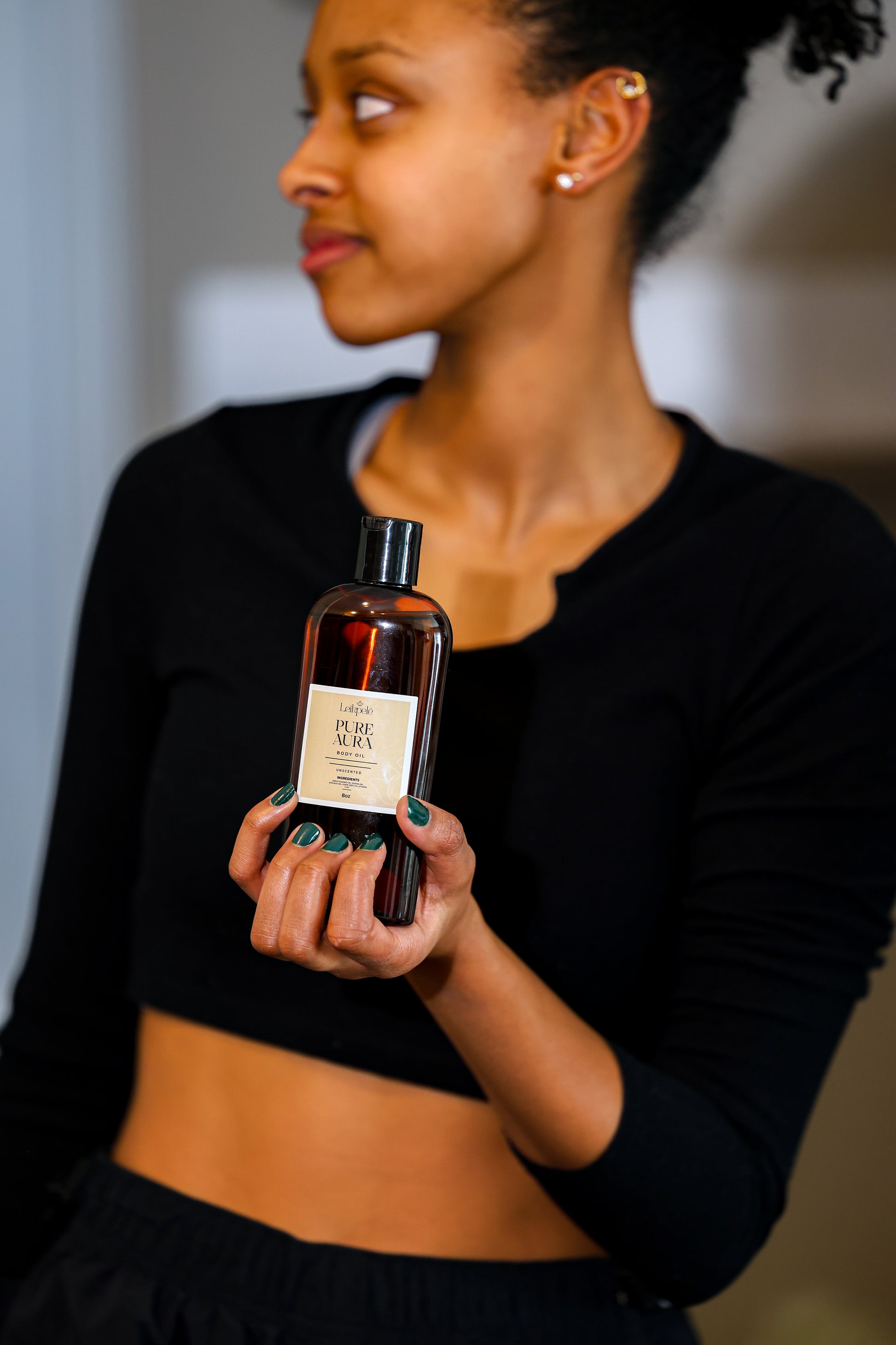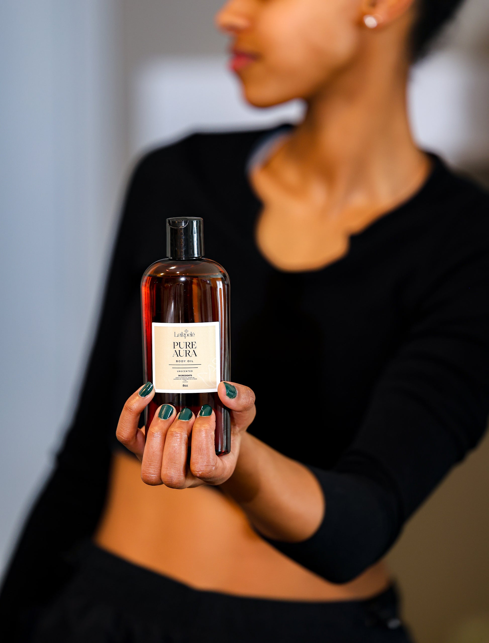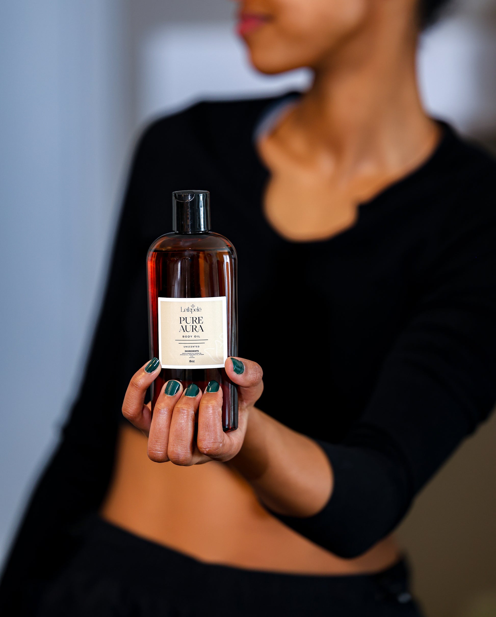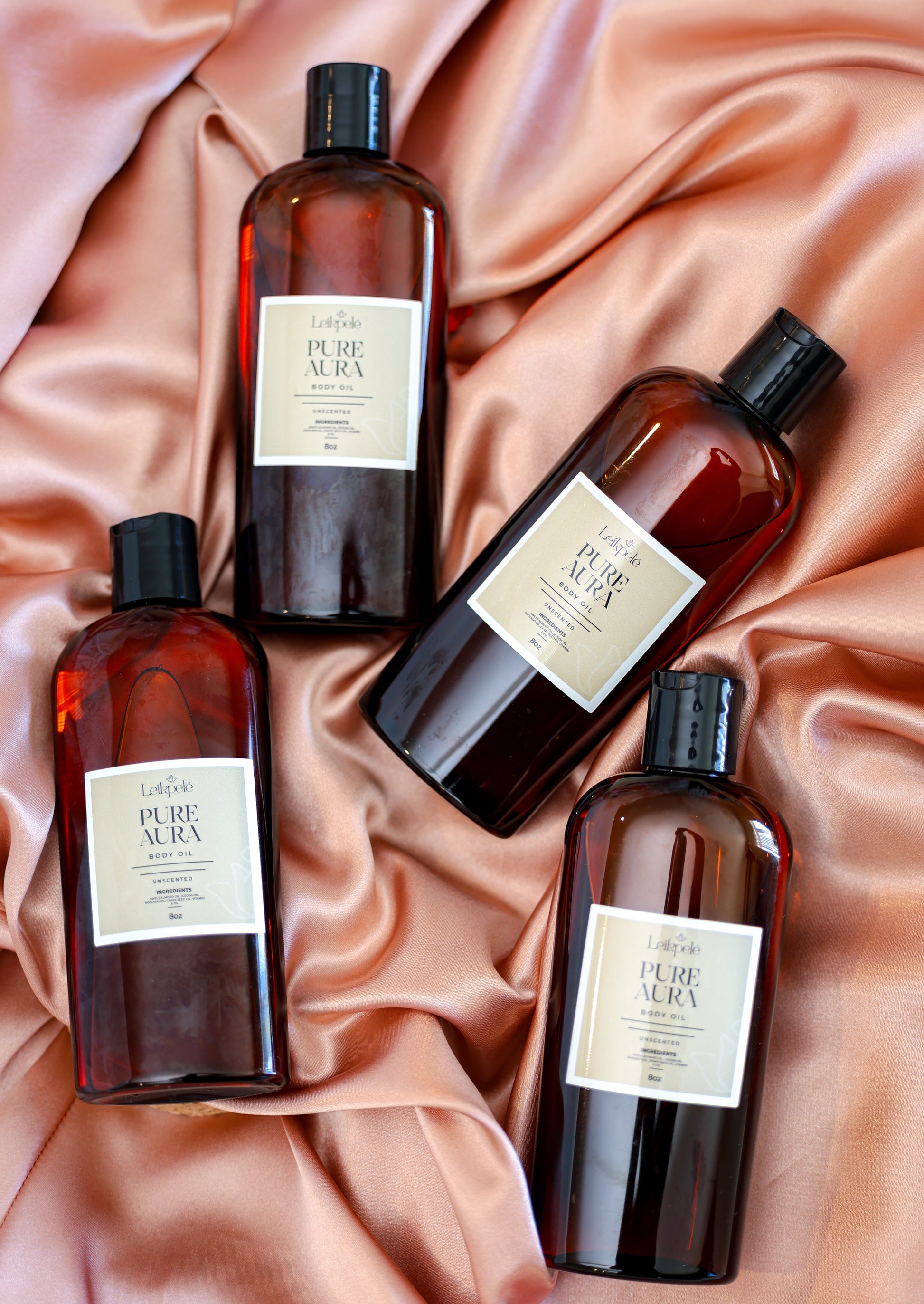 Pure Aura, our unscented body oil crafted with care to provide the perfect blend of nourishment without any added fragrance. This exquisite formula features five premium carrier oils, making it an ideal choice for individuals with fragrance sensitivities or for those who seek the pure and nourishing benefits of our oils without any accompanying scents. Immerse yourself in the luxurious simplicity of Pure Aura, where the focus is on pampering your skin with the finest ingredients, free from additional fragrances.
